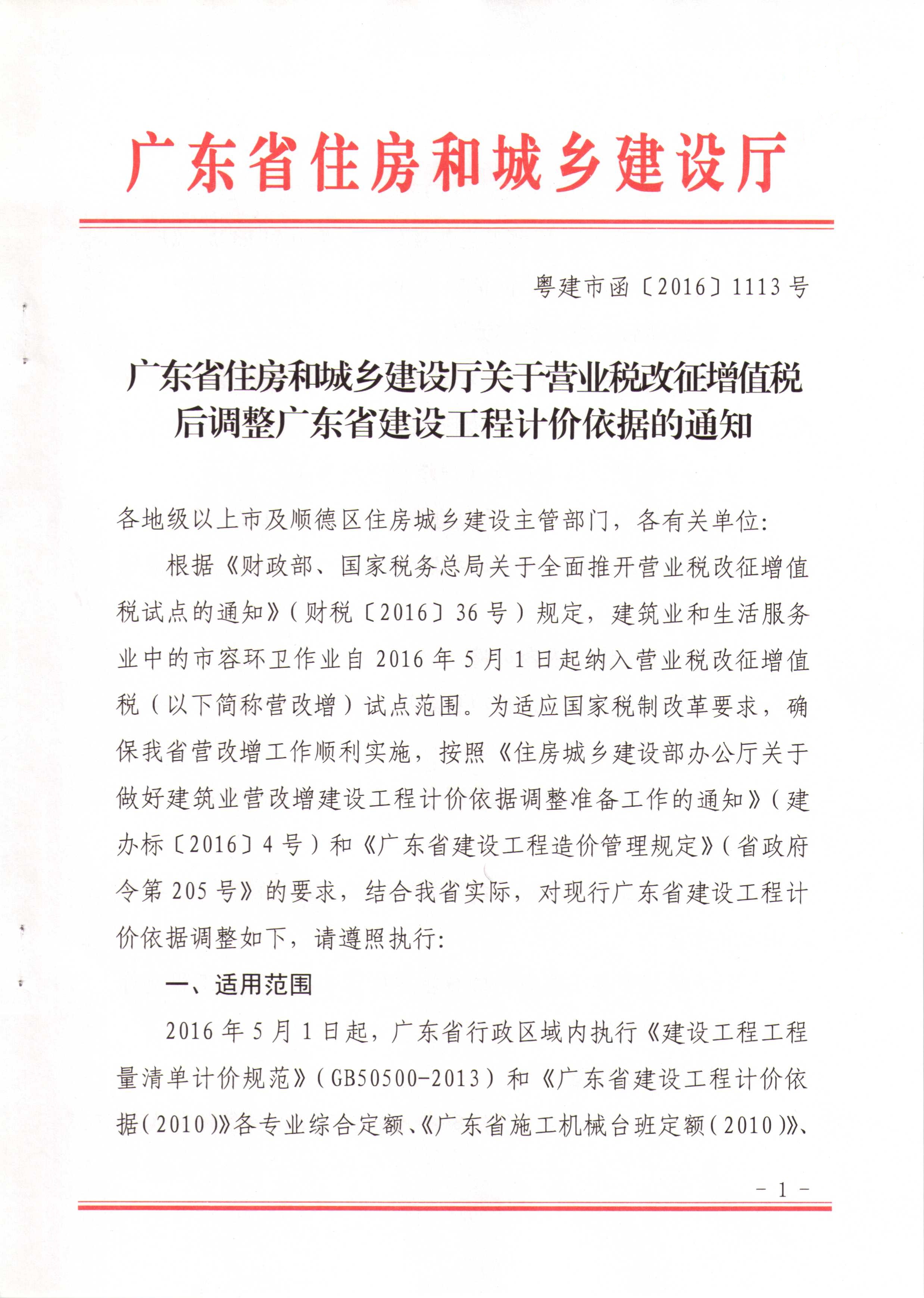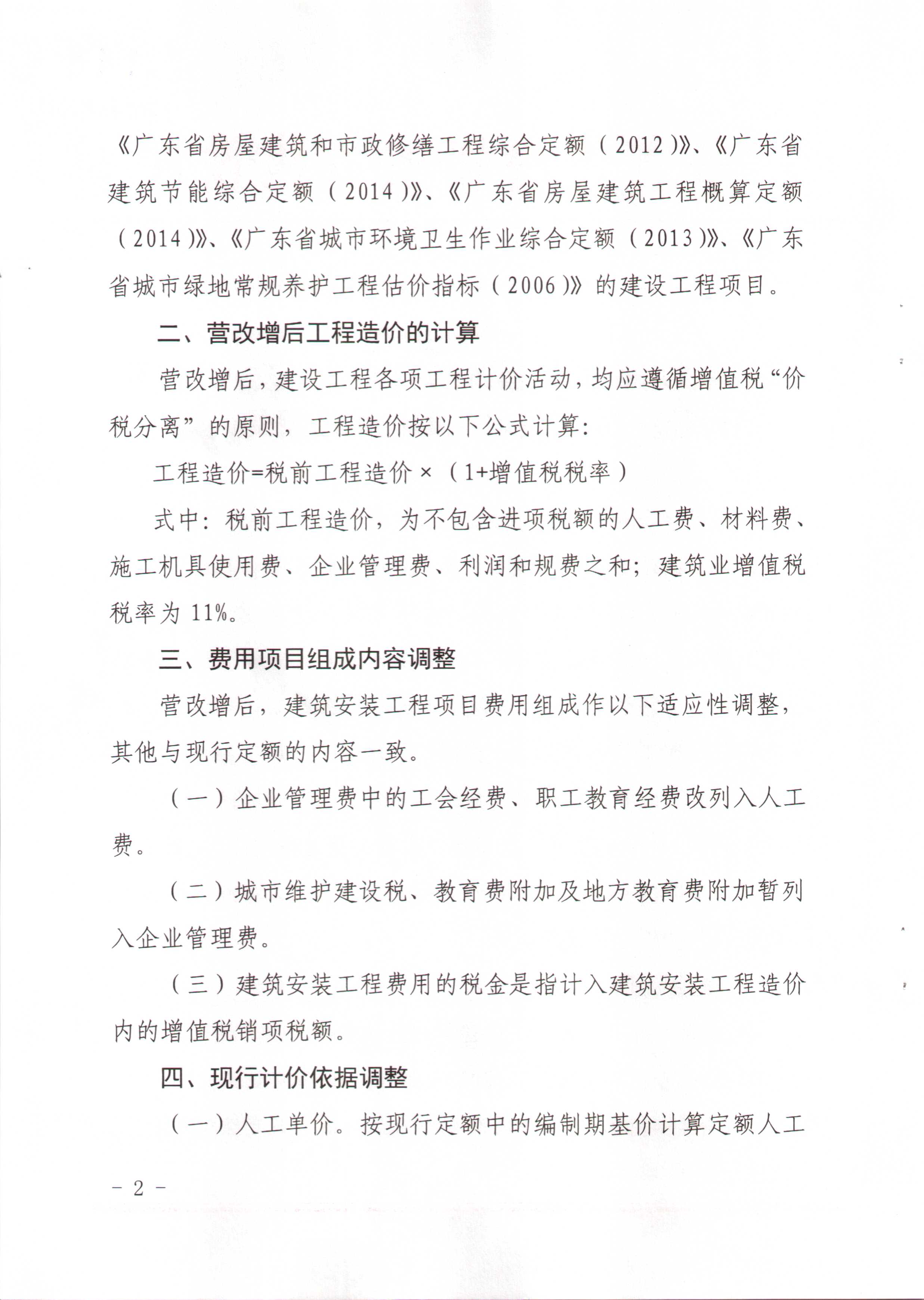 关于营业税改征增税后调整广东省建设工程计价依据的通知