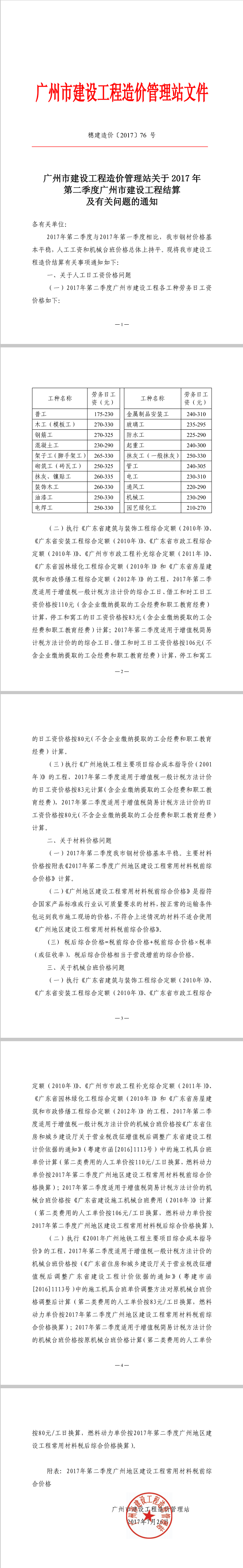 2017年第二季度广州地区建设工程常用材料费综合价格---附件下载.pdf